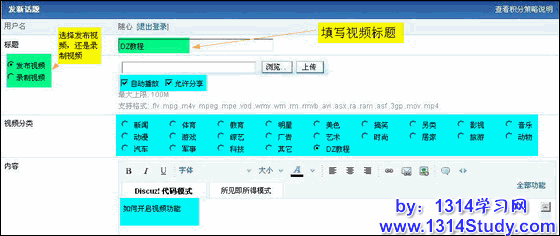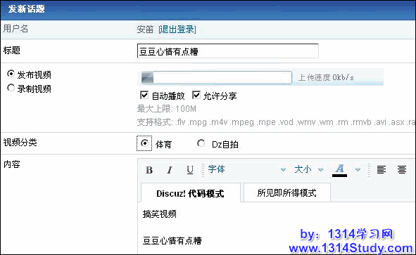 Discuz!6.0支持会员上传视频和在线录制,在此为大家介绍一下站长如何开启这个功能,会员如何使用这个功能。