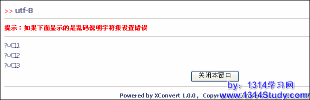 接下来我们选择数据库字符集为 utf8 试试,点击“检查此设置”则弹出如图 6 所示的窗口,显然这个显示是乱码。