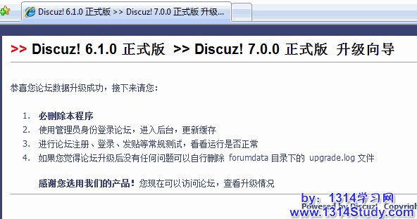 至此, Discuz! 6.1.0 到 Discuz! 7.0.0 升级成功!