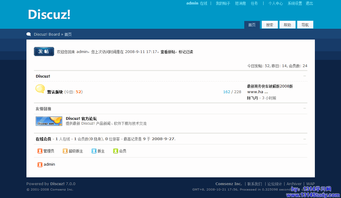 3、打开论坛进行注册、登录、发帖等常规测试,看看运行是否正常。