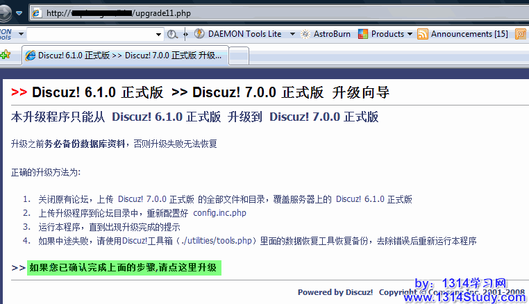 5、在浏览器中运行 http://www.domain.com/upgrade11.php 升级程序进行升级(其中 http://www.domain.com 为你的论坛访问地址)