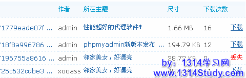 点击最后面的“下载”链接,可以下载到这个附件。点击所在主题下面的链接,可以访问到发布这个附件的相应主题。