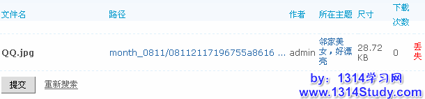 附件的管理,主要包括附件的删除、下载、查看附件所在主题。当按查询条件提交以后,会看到类似下图所示的搜索结果: