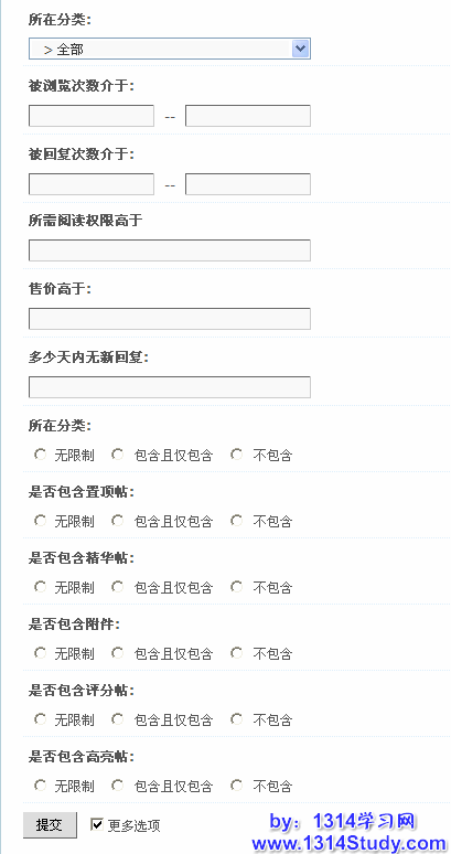 3、被回复次数小于(大于):即按照帖子被回复的次数进行搜索。