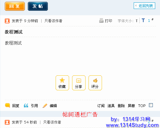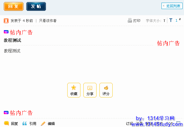 帖内广告可以设置在帖子内部显示的位置和显示的帖子楼层,显示效果如图: