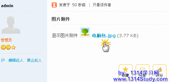 如果选择“否”指帖子中不直接显示图片,而需要点击附件链接才可以看到,如下图所示: