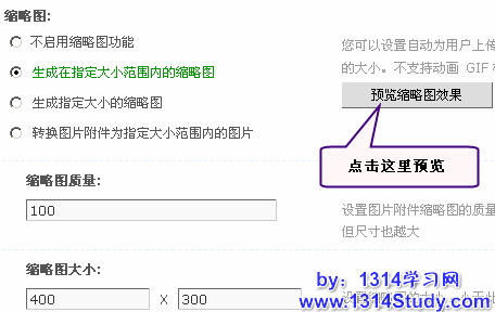 1)不启用缩略图功能:指附件图片按原始大小显示,不生成缩略图。