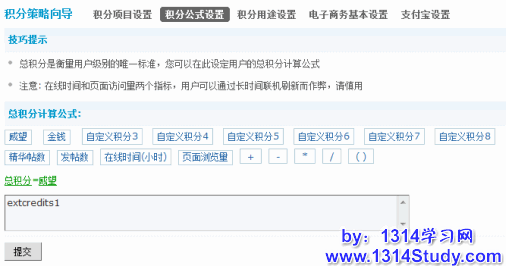 积分公式设置,设置站点的总积分公式,如下图: