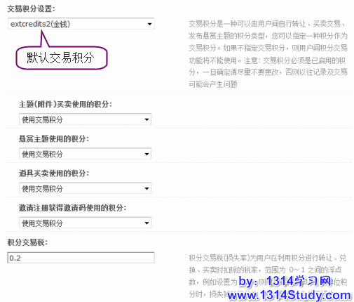 交易积分是一种可以由用户间自行转让、买卖交易、发布悬赏主题的积分类型,站长必须指定一种积分作为交易积分。如果不指定交易积分,用户间的积分交易功能将不能使用。注意:交易积分必须是已启用的积分,一旦确定请尽量不要更改,否则以往记录及交易可能会产生问题。
