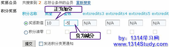 搜索出来用户后,即可对符合条件的用户进行积分的奖惩,如下图所示: