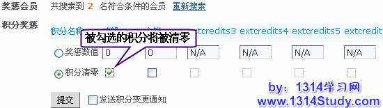 除对用户进行积分奖惩外,还可以对用户进行积分清零,即清空用户的积分,使其为 0 ,如下图所示: