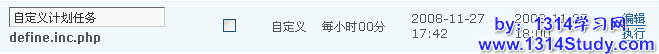 3、编辑新增计划任务的执行时间和任务脚本,如下图。例如自己添加的脚本名是define.inc.php。