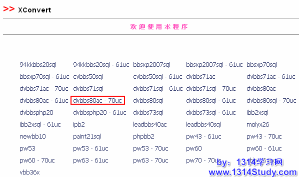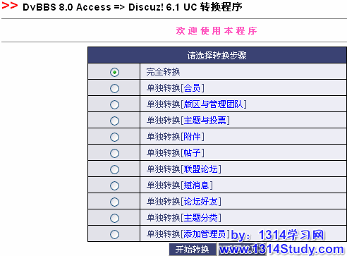下面以 Linux 空间下 DvBBS 8.0 Access 转换到 Discuz! 7.0.0 为例,来详细介绍 XConvert1.3.1 的使用方法。