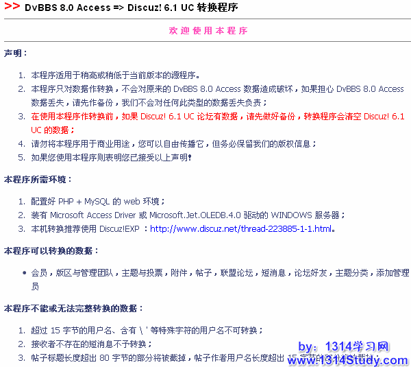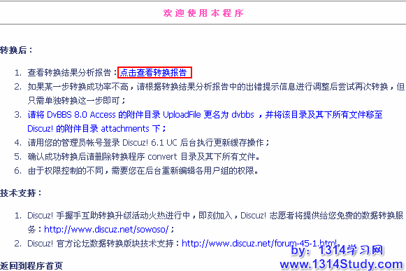 3、在上图上点击 “dvbbs80ac-70uc” 即选择了 DvBBS 8.0 Access 转换到 Discuz! 7.0.0 的子体,继而看到如下界面:
