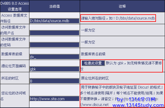 (4)、原论坛的访问域名用于转换帖子中的版块及帖子地址至 Discuz! 的格式;多个域名请使用 | 隔开;每个域名不能使用 / 结尾;如果不需要转换,请留空;例:http://discuz.net|http://www.discuz.net