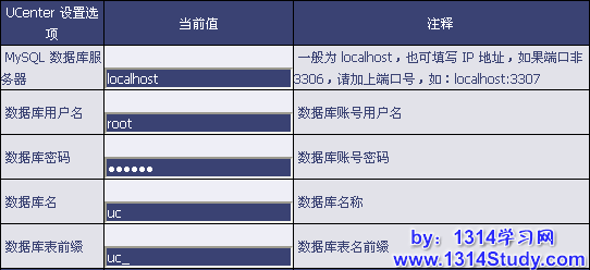 UCenter 和 Discuz! 数据库配置信息,这个您可以根据 UCenter 和 Discuz! 根目录下的 config.inc.php 来填写。