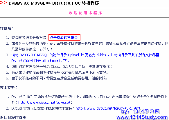 3、在上图上点击 “dvbbs80sql-70uc” 即选择了 DvBBS 8.0 MSSQL 转换到 Discuz! 7.0.0 的子体,继而看到如下界面:
