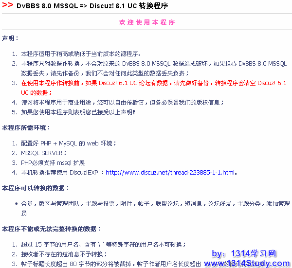 下面以 DvBBS 8.0 MSSQL 转换到 Discuz! 7.0.0 为例,来详细介绍 XConvert1.3.1 的使用方法。