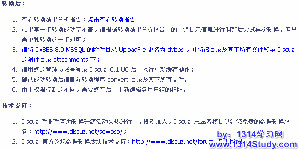 为使更多站长顺利过渡到 Discuz! 7.0.0,Comsenz 随后升级一体化转换程序到 XConvert1.3.1,该转换程序是在 XConvert1.3.0 的基础上添加转换子体构成的,其可以将全部常见的论坛转换为 Discuz! 6.0.0 及 Discuz! 6.0.0 以上版本,功能强大,使用方便。