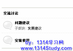 其中“交流讨论”为“分区”名称,“问题建议”和“安装使用”为“板块”名称,“发展建议”为“子版块”名称。