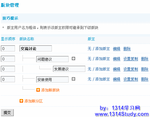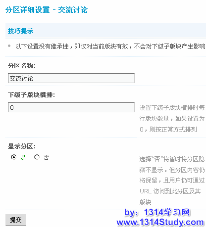 子版块还可以选择是否继承上级版块的设置,填写完毕后点击提交即可。