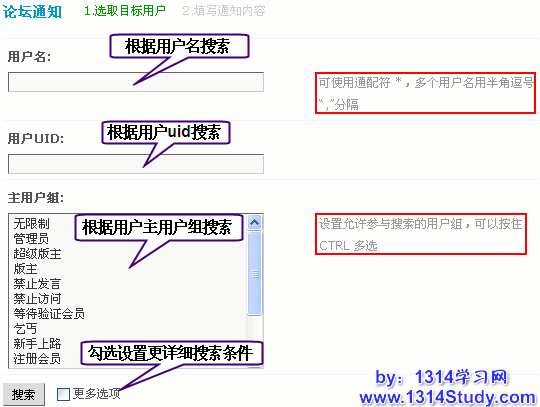 做为站长,有时需要通知部分用户一些信息。当需要通知的用户比较多时,逐个通知是比较麻烦的。Discuz! 的论坛通知功能即可解决这个问题,实现批量通知。您还可以选择发送论坛短消息或者发 Email 来通知客户。