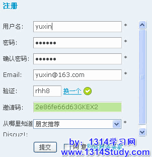 如果使用的邀请码正确并且是第一次使用则注册成功!