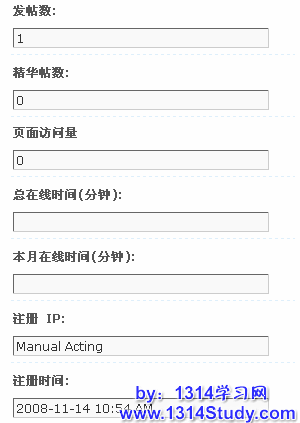 这里可以看到会员的积分数、发帖数、所在管理组、所在用户组,同时我们可以编辑修改用户的所在用户组,编辑在版块的特殊权限,修改用户的积分,授予会员勋章,及编辑会员的详细资料。
