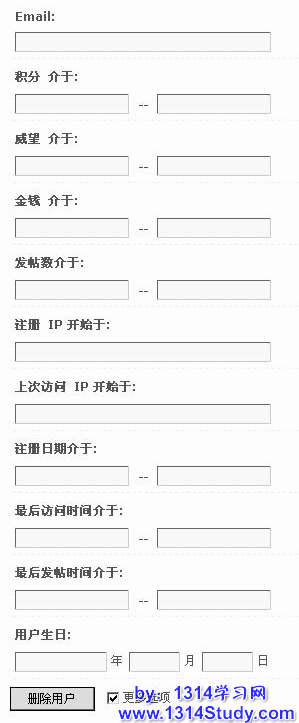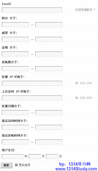 填写好搜索条件,点击“更多选项”可以按照更详细的条件搜索要删除的用户,如下图所示: