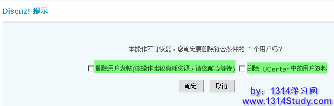 注意:如果不选择“删除 UCenter 中的用户资料”那么当会员下次登录论坛时,直接激活就可以继续发帖。只是把原来的帖子内容删除了。