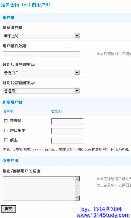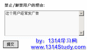 如果您通过用户组设定禁止或解除禁止该用户,这里需要输入操作理由,系统将把理由记录在用户禁止记录中,以供日后查看。