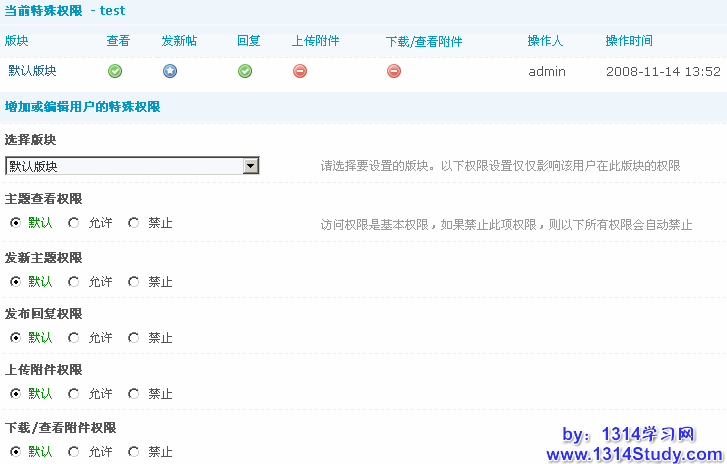 版块特殊权限的设置如下图所示: