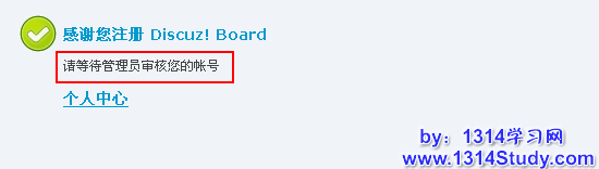 开启“人工审核”后,新用户注册后,即可看到如下提示: