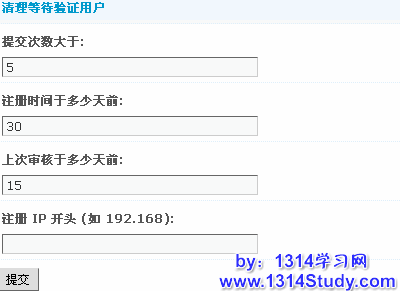 管理员登录后台 => 用户 => 审核新用户 => 清理,即可看到下图所示: