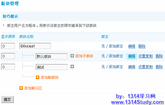后台 => 版块 => 编辑论坛版块,如图所示: