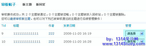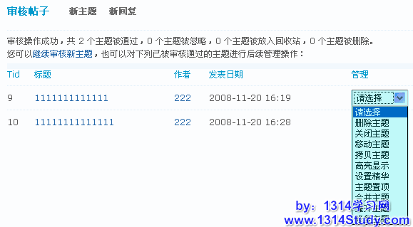 对通过审核的主题还可以进行管理操作,如图所示: