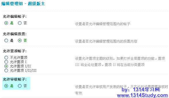 3、设置论坛中能够审核别人发帖的管理组