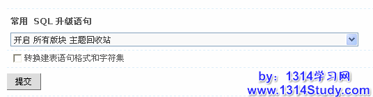 如果版块太多,一个一个版块开启太麻烦的话,还可以到工具 => 数据库 => 升级的“常用 SQL 升级语句”里面选取“开启所有版块主题回收站”。如下图所示: