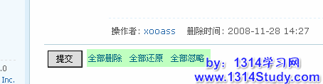 然后你可以删除、还原帖子,或者你想下次再做处理的话,可以先忽略此帖子,或者你进行全部删除,全部还原和全部忽略的选择,这样更快捷的进行操作。如下图所示: