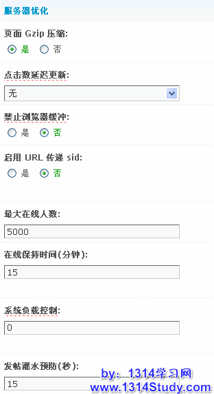 我们在“论坛的后台 => 全局 => 优化设置 => 服务器优化”这个选项里面有如下一些选项,大家或许对后台的设置不是非常的了解,那么下面我对该配置做些详细的说明,希望对你有所帮助。