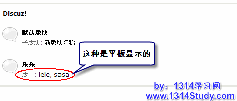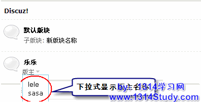 5、版主显示方式:版主显示方式有两种:平面显示和下拉菜单式显示,其效果分别如下图所示: