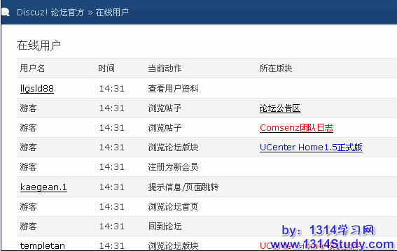 3)在首页和分版块都显示即在首页和分版块都有显示在线用户