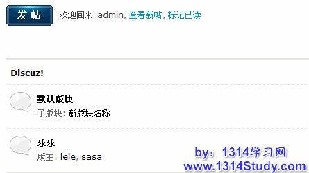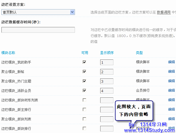 模块名称显示的时候在(工具 => 数据调用)中存在的模块,您可以选择是否使用以及显示顺序,设置完成后提交,既可以在论坛首页看到,如下图所示: