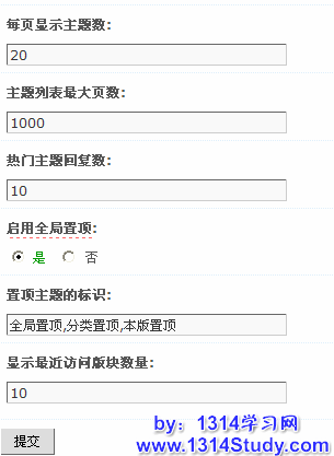 1、每页显示主题数:此项设置的是前台每个版块下主题列表的显示的主题数目。