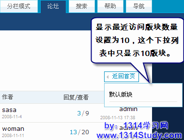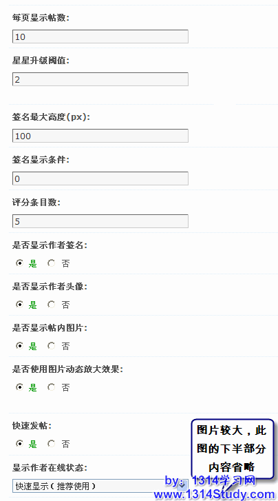 1、每页显示帖数:此项设置的是每个版块下帖子列表中每页显示帖子数目。