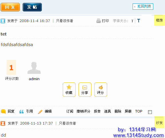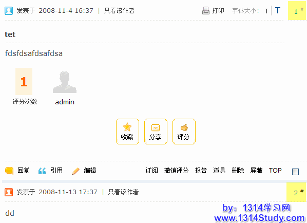 5、评分条目数:此项设置的是在帖子中显示最近评分结果的条目数,0 为不显示。