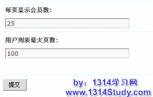 这里可以设置用户列表页每页显示的会员数以及最多显示多少页。