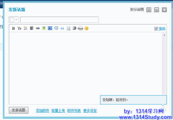 提交后,我们到论坛进行发帖操作,可以看到在发帖框右下角弹出的信息,如下图所示: