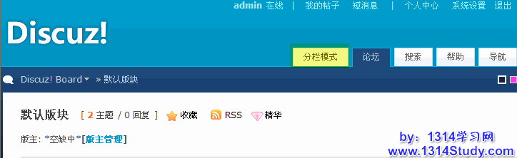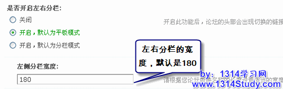 4、是否开启左右分栏:开启此功能后,论坛的头部会出现切换的链接(平板模式/分栏模式) 。