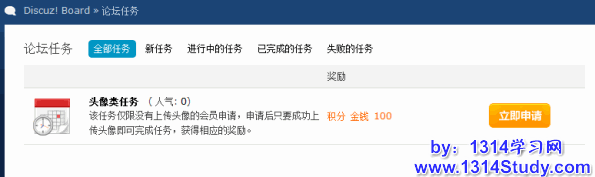 论坛任务系统是在 Discuz! 7.0.0 版本中新增的功能,通过使用论坛任务可以起到对用户引导的作用,比如引导用户上传自己的头像、让用户使用论坛推广、完成发布帖子、添加好友等动作,可以促使用户更快的熟悉您的论坛,快速的融入您的站点当中。